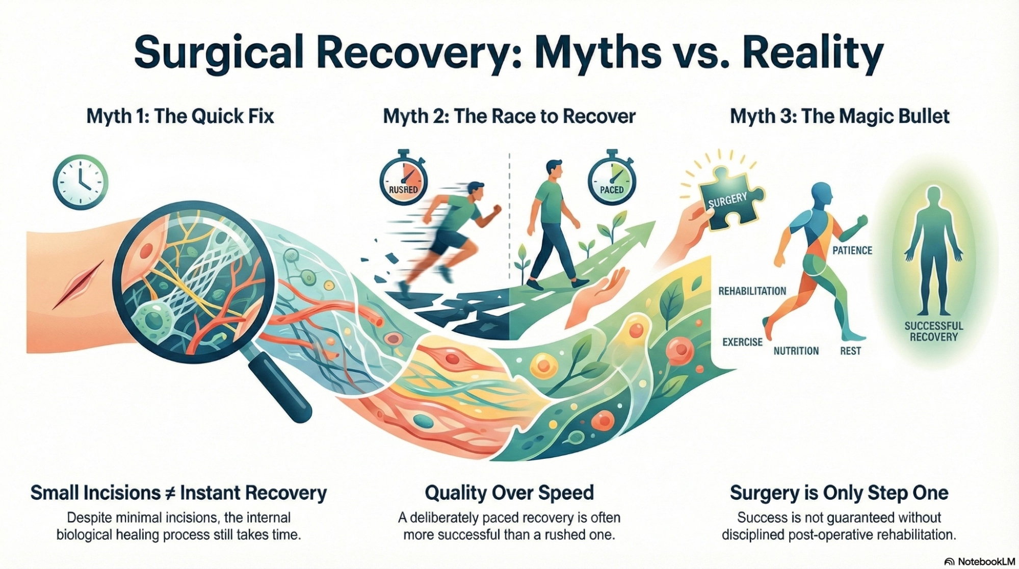 Modern arthroscopy allows precision. It does not remove the need for patience. In fact, experienced surgeons often deliberately slow patients down. Not because recovery is failing, but because healing is still in progress.